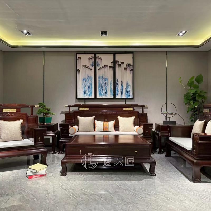 Šiuolaikinis kiniško stiliaus juodmedžio masyvo sofos komplektas